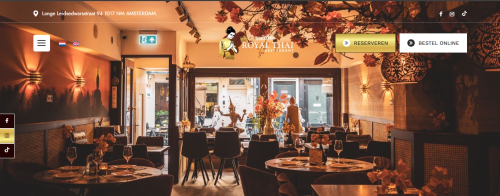 Authentiek Thais restaurant gelegen nabij het Leidseplein aan de Lange Leidsedwarsstraat in Amsterdam, dat verfijnd dineren biedt in een elegante sfeer - ideaal voor diners, vieringen en speciale gelegenheden in het hart van het uitgaansgebied van de stad.